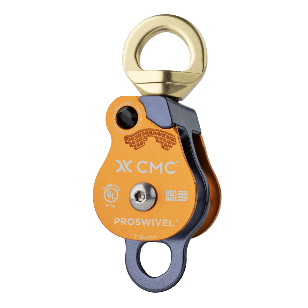 Las poleas CMC ProSwivel combinan un pivote y una polea en una sola herramienta con una placa lateral única que se abre mientras la polea todavía está unida al ancla. Al asociarse con Rock Exotica, CMC ahora ofrece más poleas giratorias certificadas según los estándares NFPA. Nuestra línea ProSwivel renombrada y ampliada incluye ocho poleas para elegir. Puede elegir la mejor polea CMC ProSwivel para el trabajo, agrandando cuando necesite más eficiencia.