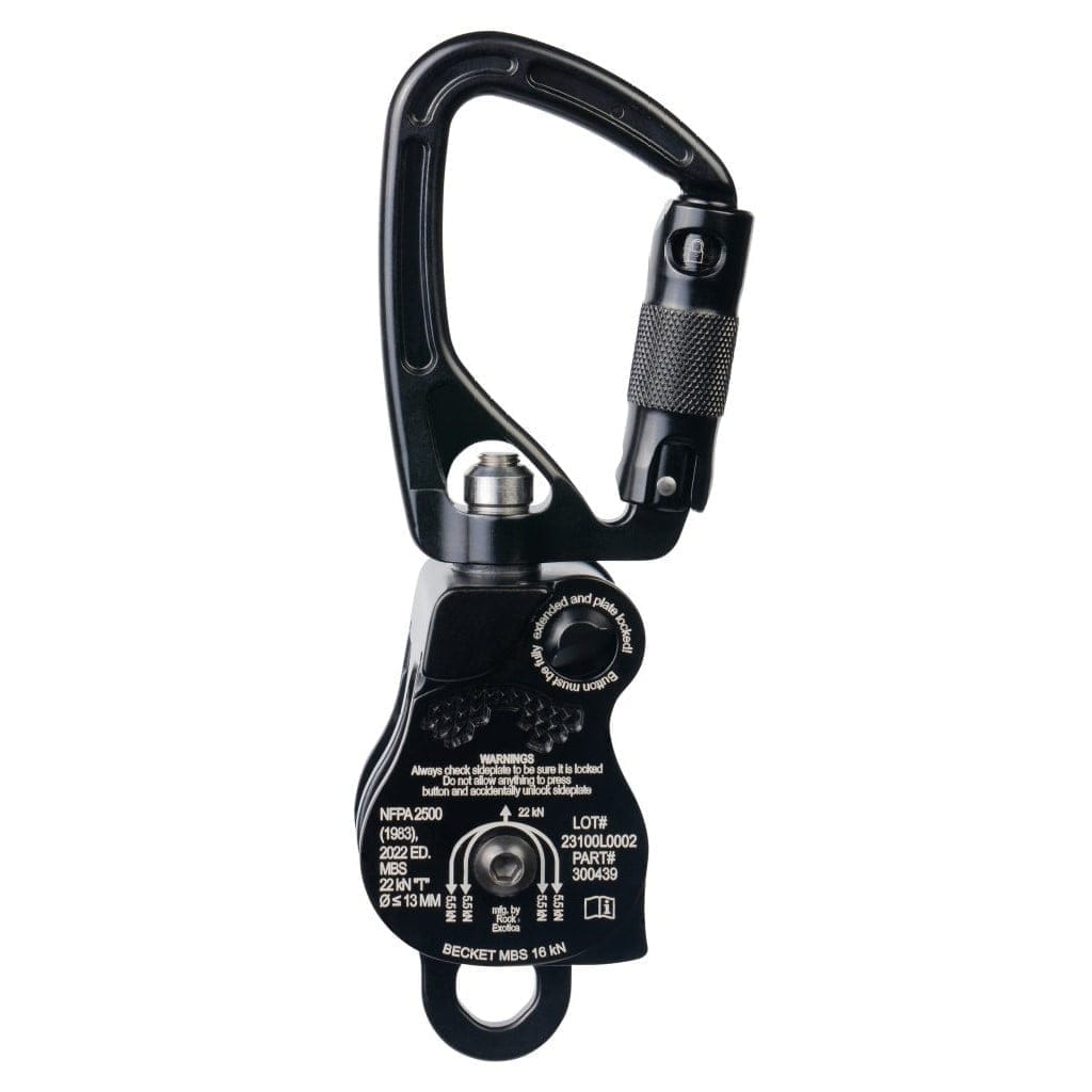 - La placa lateral pivotante permite cargar la cuerda sin desconectarse del ancla.