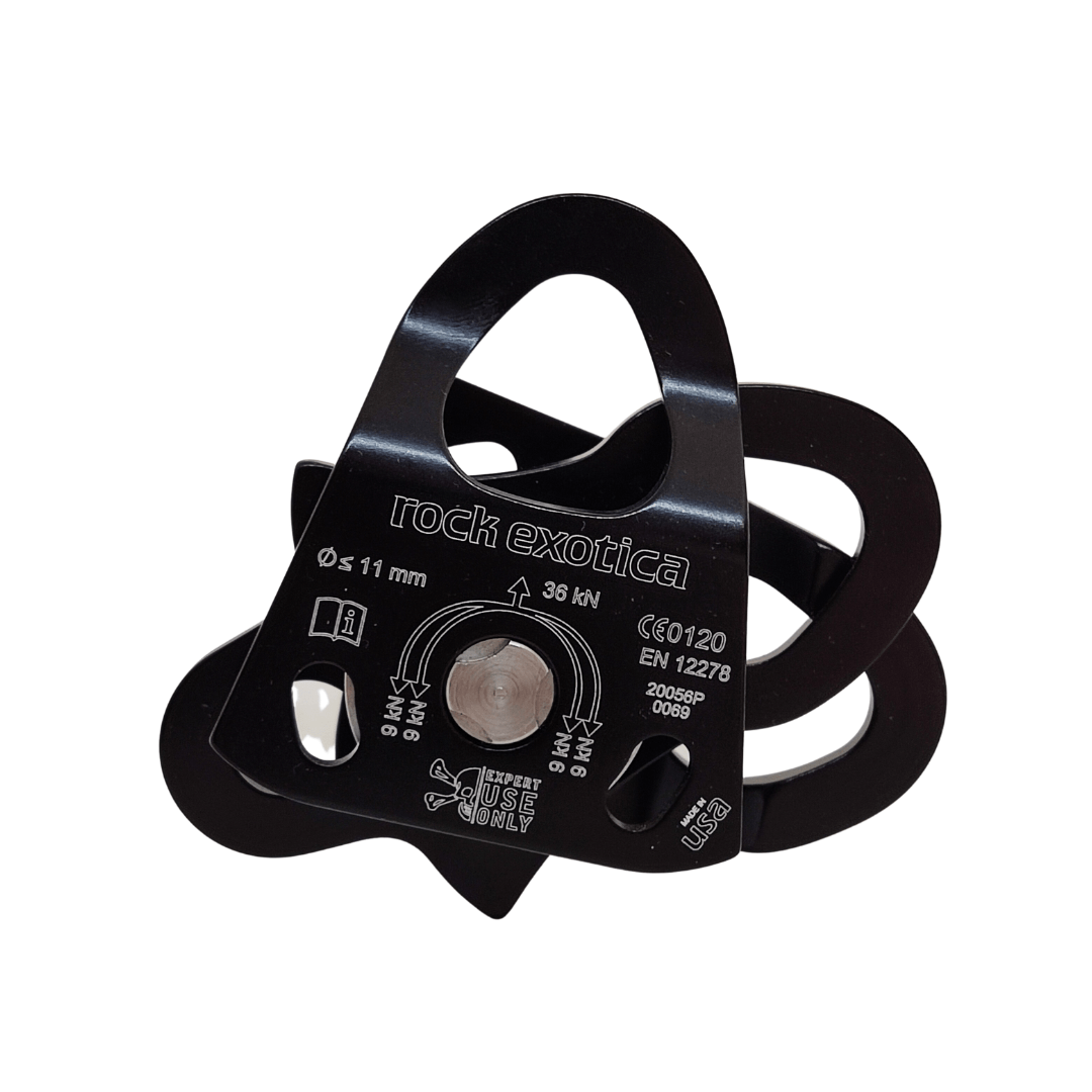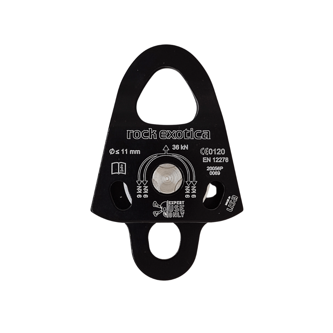 - Las placas laterales mecanizadas permiten un diseño más compacto manteniendo la misma capacidad de cuerda que otras poleas.