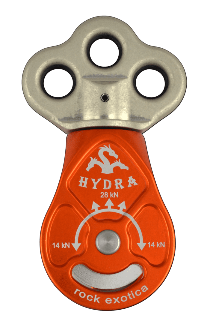 Cualquier herramienta para arbolistas debe ser liviana, duradera y cumplir una variedad de funciones. El HYDRA se ajusta a esa descripción al proporcionar la funcionalidad de una polea con una placa de montaje. La parte superior giratoria de HYDRA ofrece tres puntos de conexión forrados con juntas tóricas de goma para sujetar los mosquetones firmemente. Estos puntos de conexión fueron diseñados específicamente para el mosquetón rockO para evitar cargas cruzadas peligrosas.