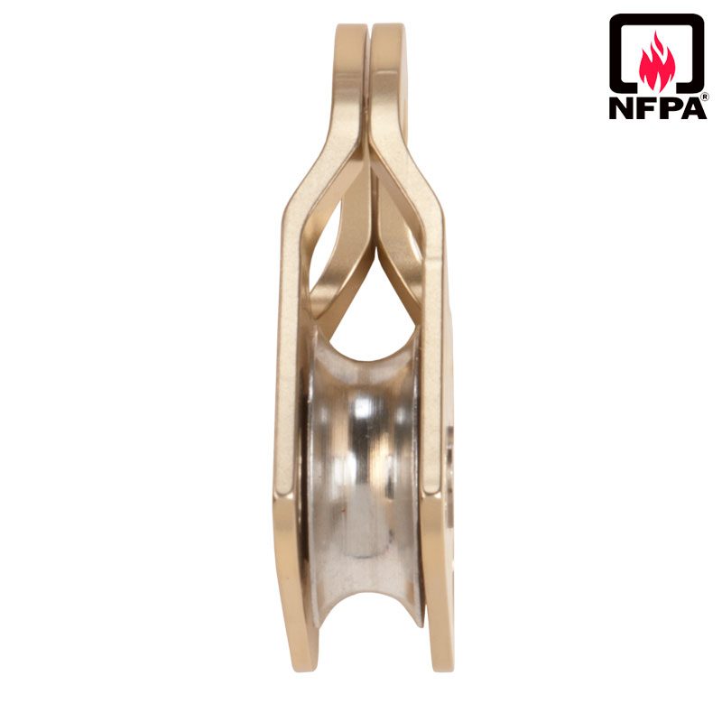 Poleas simple de placas laterales oscilantes. Sirve para cualquiera que necesite algo ligero y de bastante resistencia como para el rescate en montaña, trabajos verticales, etc. El conjunto de eje unico lateral, permite una placa lateral lisa y que no se topa con la superficie. Se utiliza con cuerdas de 11mm como máximo.