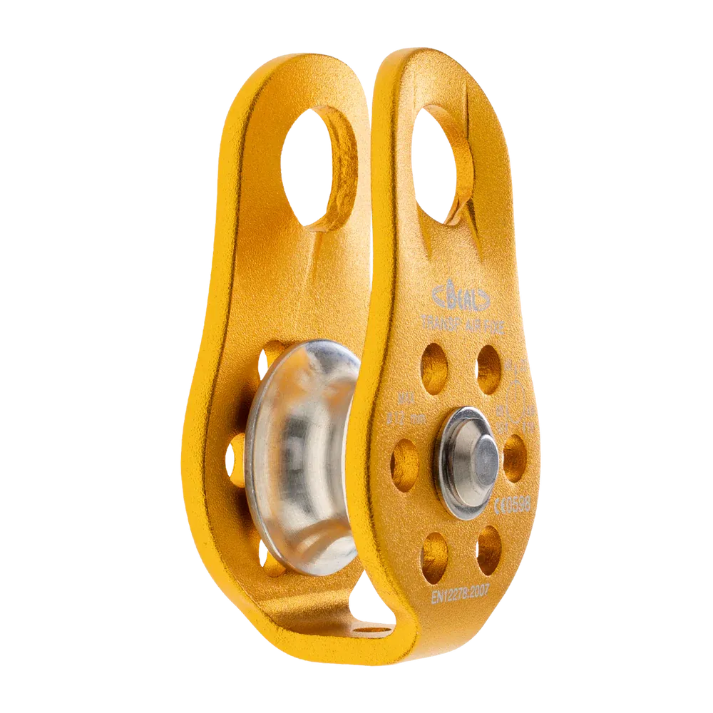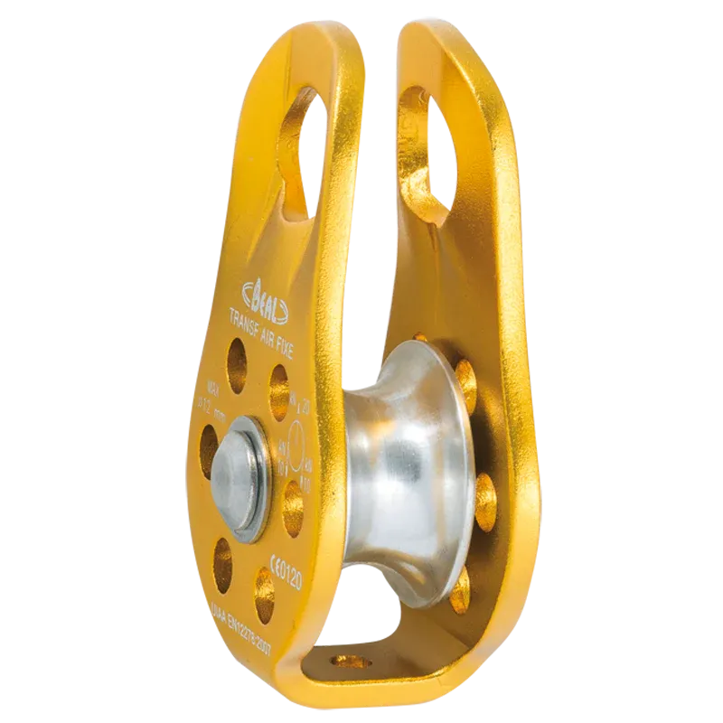 La polea FIJA TRANSF’AIR es una polea diseñada para deflexión de carga, arrastre y acoplamiento con un bloqueador mecánico. Compacto y ligero, es muy fácil de manejar. Su buen rendimiento está garantizado por una polea montada sobre un anillo de bronce. Su durabilidad se ve reforzada por un eje y una arandela de acero inoxidable. Y para garantizar la trazabilidad, cada polea tiene un número individual.