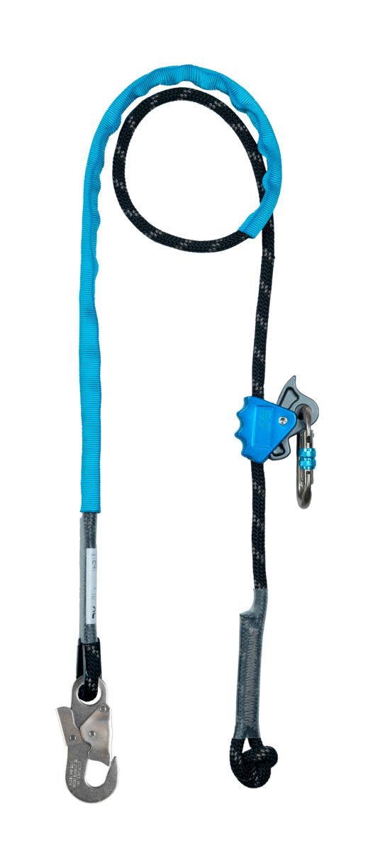 - Las cuerdas de posicionamiento Irudek disponen de un elemento regulador para ajustar la longitud y están destinadas para ser conectadas a las anillas de anclaje laterales de un cinturón de mantenimiento para sujeción en el puesto de trabajo o retención (EN 358).