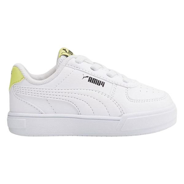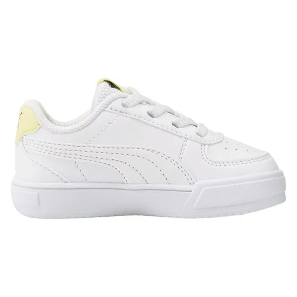 Esta Puma Caven tiene un estilo muy trendy. Es una zapatiila baja con doble suela y un corte de piel blanco con un toque amarillo en la lengüeta y en el talón que la hacen diferencial. Se presenta tan cómoda como a la última tendencia.