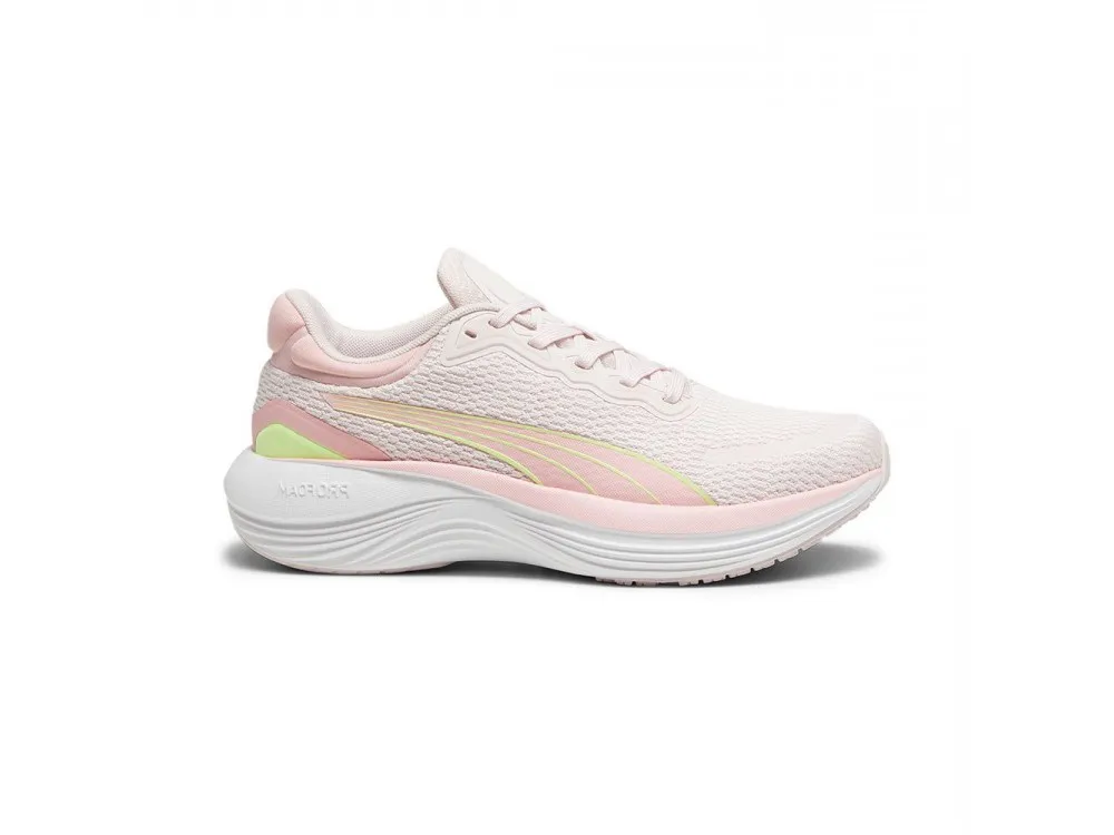 Las Puma Scend Pro Running Mujer 378776 08 Rosa son unas zapatillas de running para mujer diseñadas para distancias largas. Tienen una suela exterior de goma Protread que proporciona tracción y durabilidad, una parte superior de malla transpirable que mantiene los pies frescos, y una plantilla SoftFoam+ que ofrece una amortiguación suave.