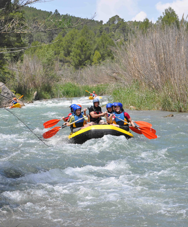 El rafting es la actividad más conocida entre los deportes de aguas bravas. Consiste en un descenso en el río Cabriel utilizando una balsa neumática con capacidad para 8 pasajeros + el guía acompañante. La estabilidad de la barca, hace que podamos descender tramos de río de cierta dificultad sin necesidad de tener ninguna experiencia ni conocimientos previos, además la forma física tampoco es importante. Todo esto convierte al rafting en una actividad totalmente segura y divertida.