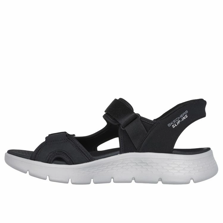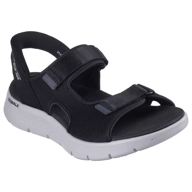 Combina fácilmente tus nuevas sandalias deportivas preferidas Skechers Hands Free Slip-ins®: GO WALK® Flex Sandal – Easy Entry. Diseñada con nuestro sistema exclusivo Heel Pillow™, esta sandalia deportiva de tiras cuenta con una parte superior tejida con correa ajustable en el empeine, una plantilla moldeada Goga Mat®, la amortiguación ligera ULTRA GO® y una pieza trasera en el talón.