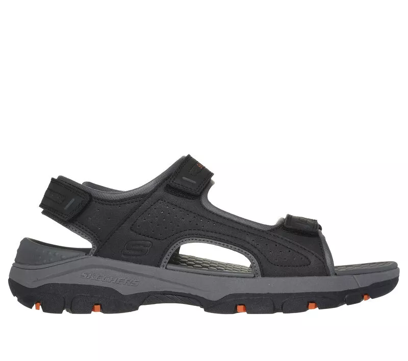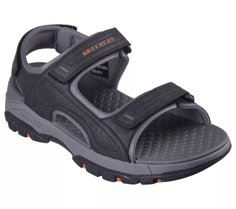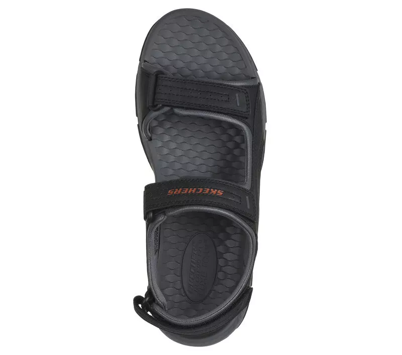 Viaja todo el día con la comodidad duradera de la sandalia Skechers Tresmen – Garo. Esta sandalia abierta Relaxed Fit presenta una parte superior sintética duradera con una plantilla Luxe Foam con amortiguación y un cierre de correa de tobillo de velcro.