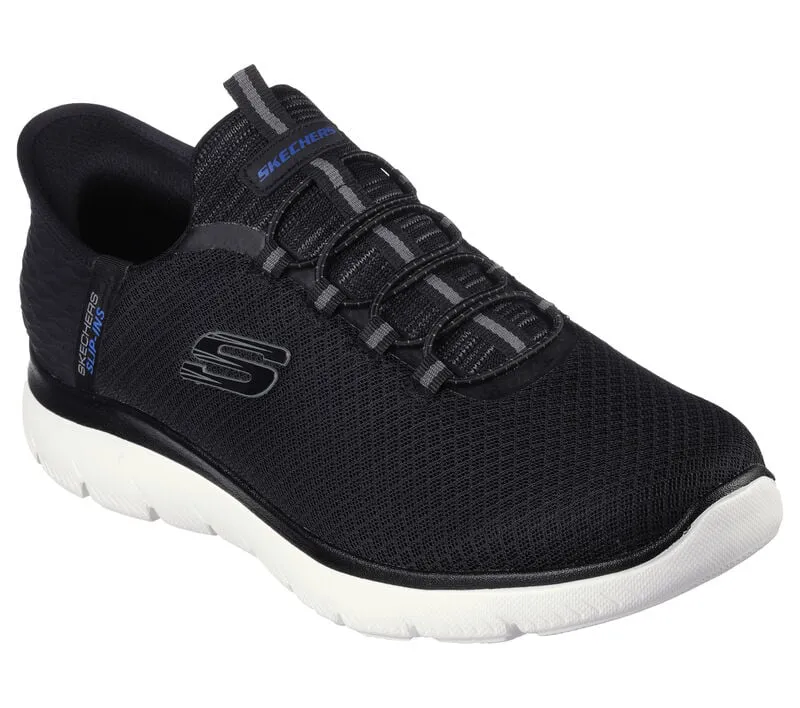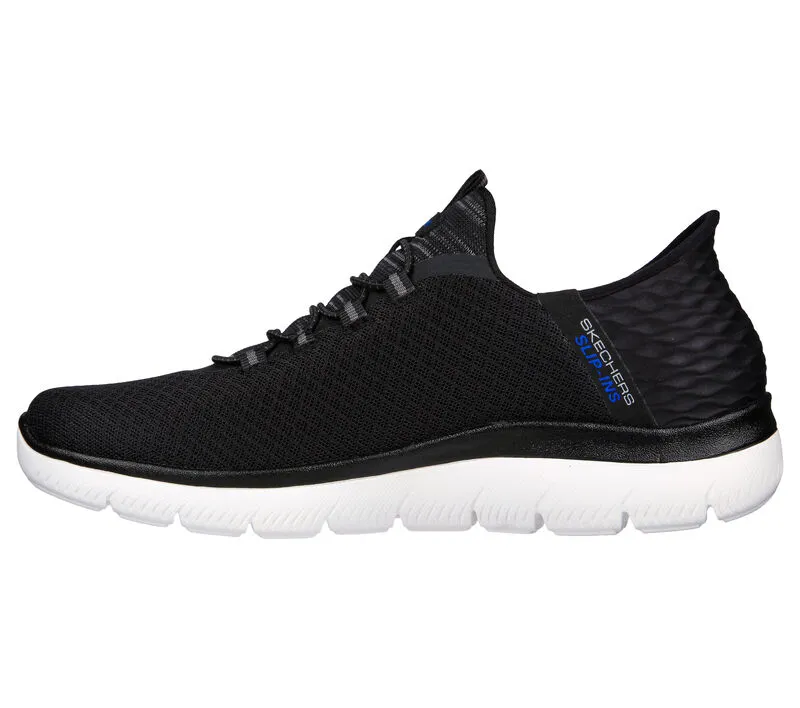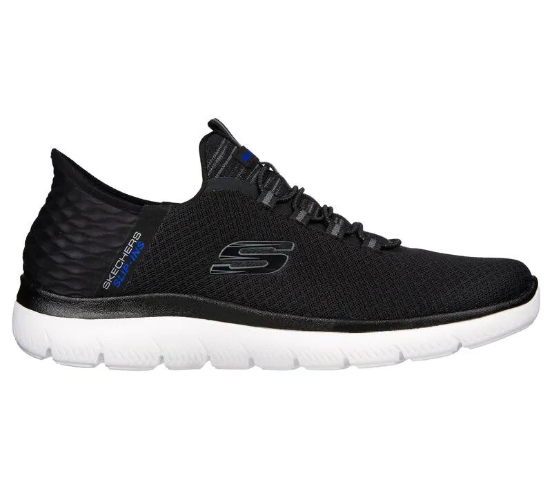 Disfruta de la comodidad de Skechers Hands Free Slip-ins™: Summits – High Range. Junto con nuestra exclusiva Heel Pillow™, que mantiene el pie en su sitio de forma segura, este modelo vegano cuenta con un exclusivo panel del talón moldeado Skechers Slip-ins™ emergente, una parte superior de malla con cordones fijos y una plantilla con amortiguación Skechers Air Cooled Memory Foam®.
