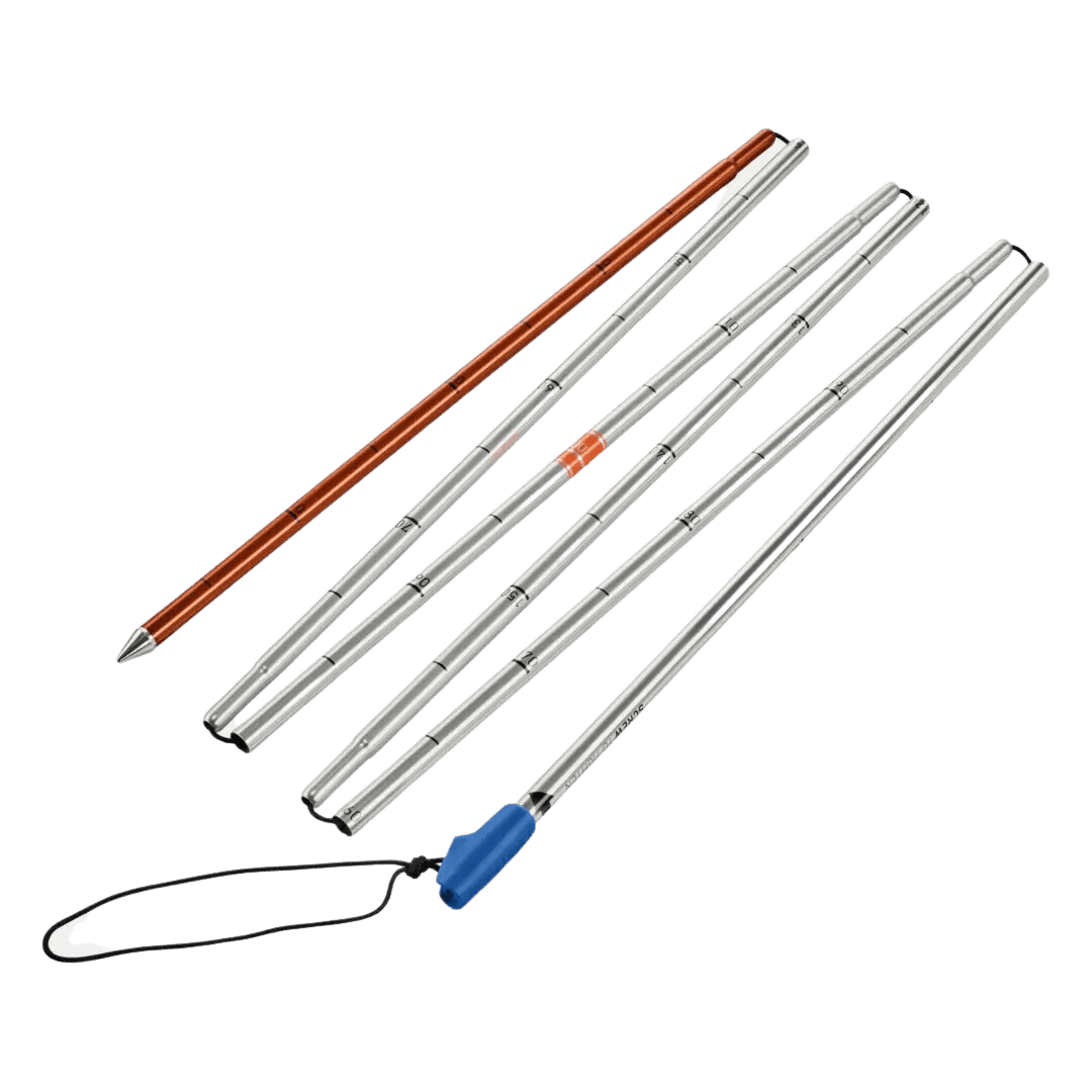 Al igual que con todas nuestras sondas, la ALU 240 presenta marcadores de profundidad fáciles de leer, un marcador claro de 1 metro y un segmento inferior naranja para adaptar de manera óptima la estrategia de paleado.
