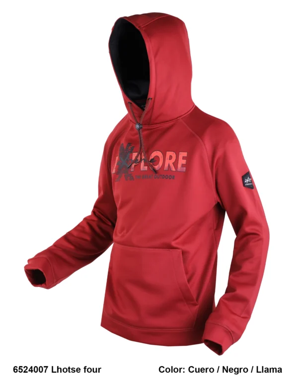 Descripción: Capucha fija con cordón ajustable, bolsillo canguro, costura reforzada, serigrafía delantera plana, etiqueta bordada en la manga.