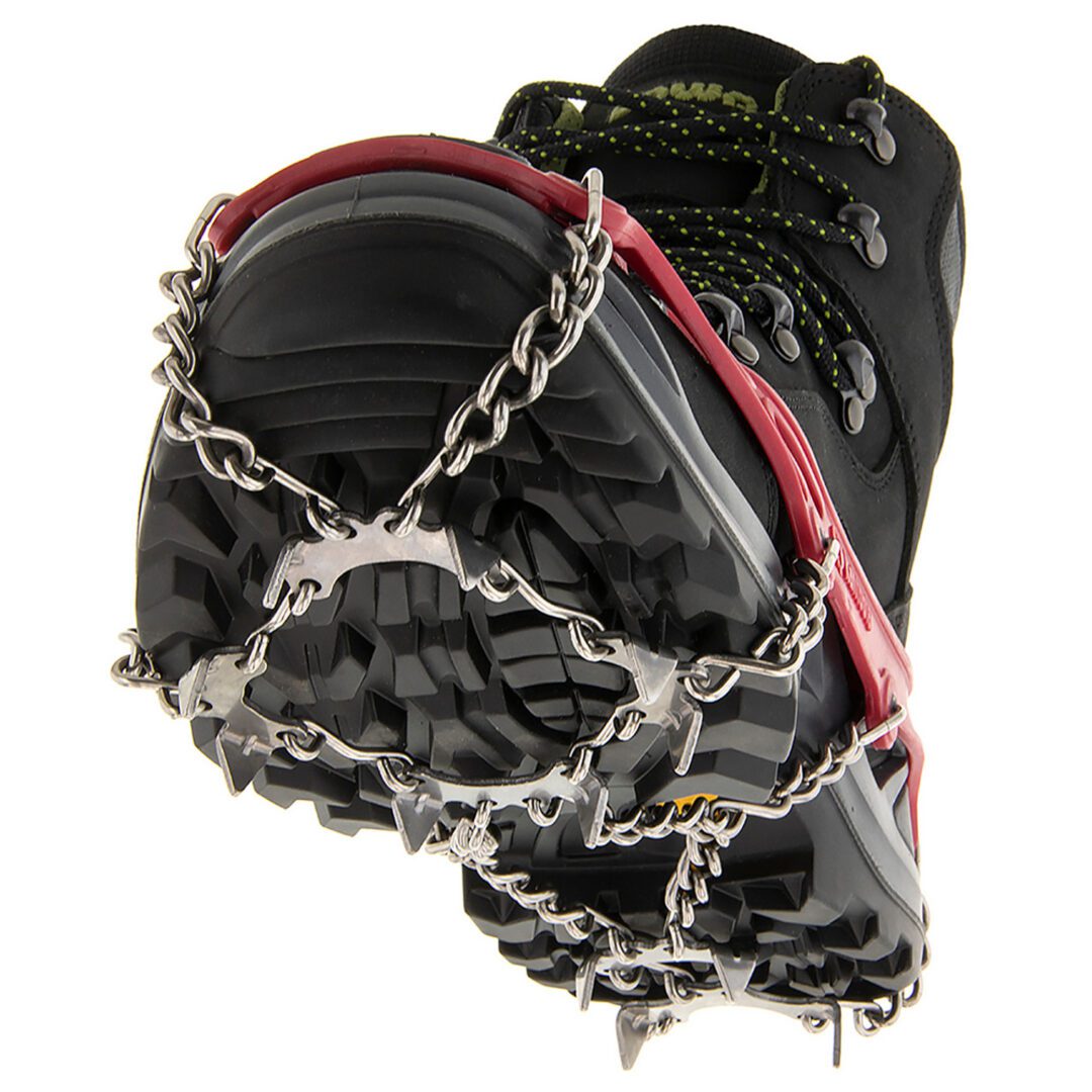 Cualquier terreno, cualquier edad, cualquier condición, bienvenido al sistema de tracción en hielo MICROspikes de Kahtoola. Pon un par en tu mochila, bolsillo o bolso y estarás listo para desenvolverte en lo que sea que la naturaleza te depare. Cuando enfrentes terrenos desafiantes; acarreos, hielo, nieve, rocas mojadas, aceras resbaladizas, sólo sácalos y póntelos. Sin correas especiales, sin amarras, sin problemas. Simplemente la confianza que necesitas para llegar directamente desde donde estás a donde quieres estar. Se ponen fácilmente sobre casi cualquier calzado y ofrecen tracción segura sobre el hielo para mantenerte en movimiento.