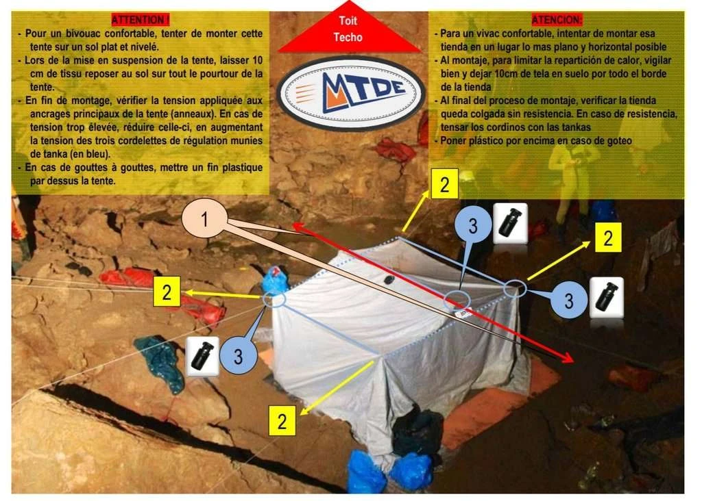 - Tienda vivac para exploraciones espeleológicas y para punto caliente en los rescates de espeleología.