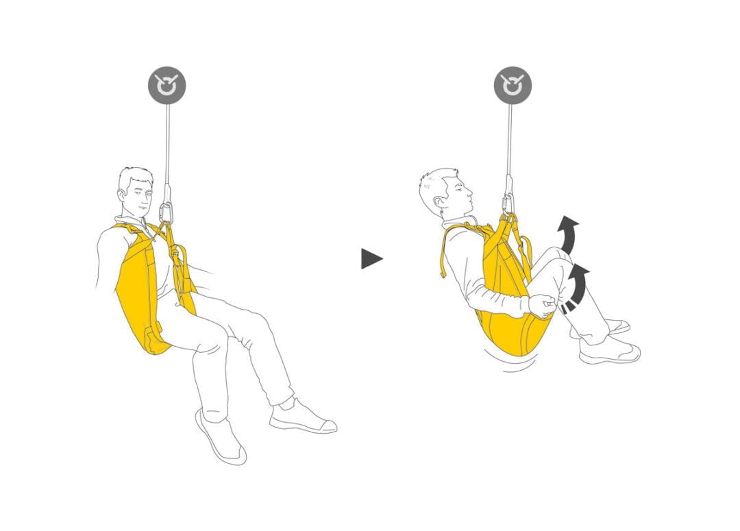 – Forma ergonómica que permite a la víctima sentarse fácilmente en el triángulo y hace que la suspensión sea más confortable que con un triángulo de evacuación clásico.