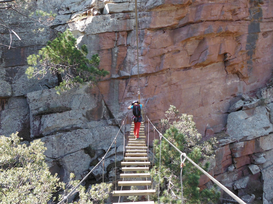 Una vía ferrata hermosa, con mucho ambiente, muy bien equipada, Difícil y con desplomes muy aéreos y disfrutones. Posee un puente con peldaños muy bonito y a una altura considerable. Tras pasar el puente viene un muro con una travesía en desplome que nos lleva directos a la cima 1100 msnm.