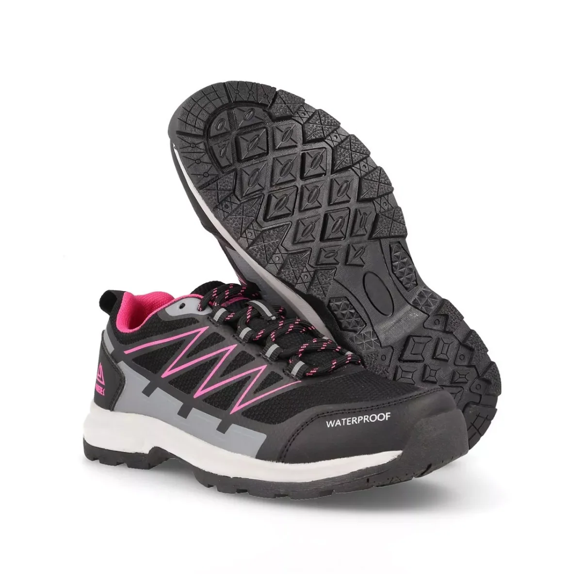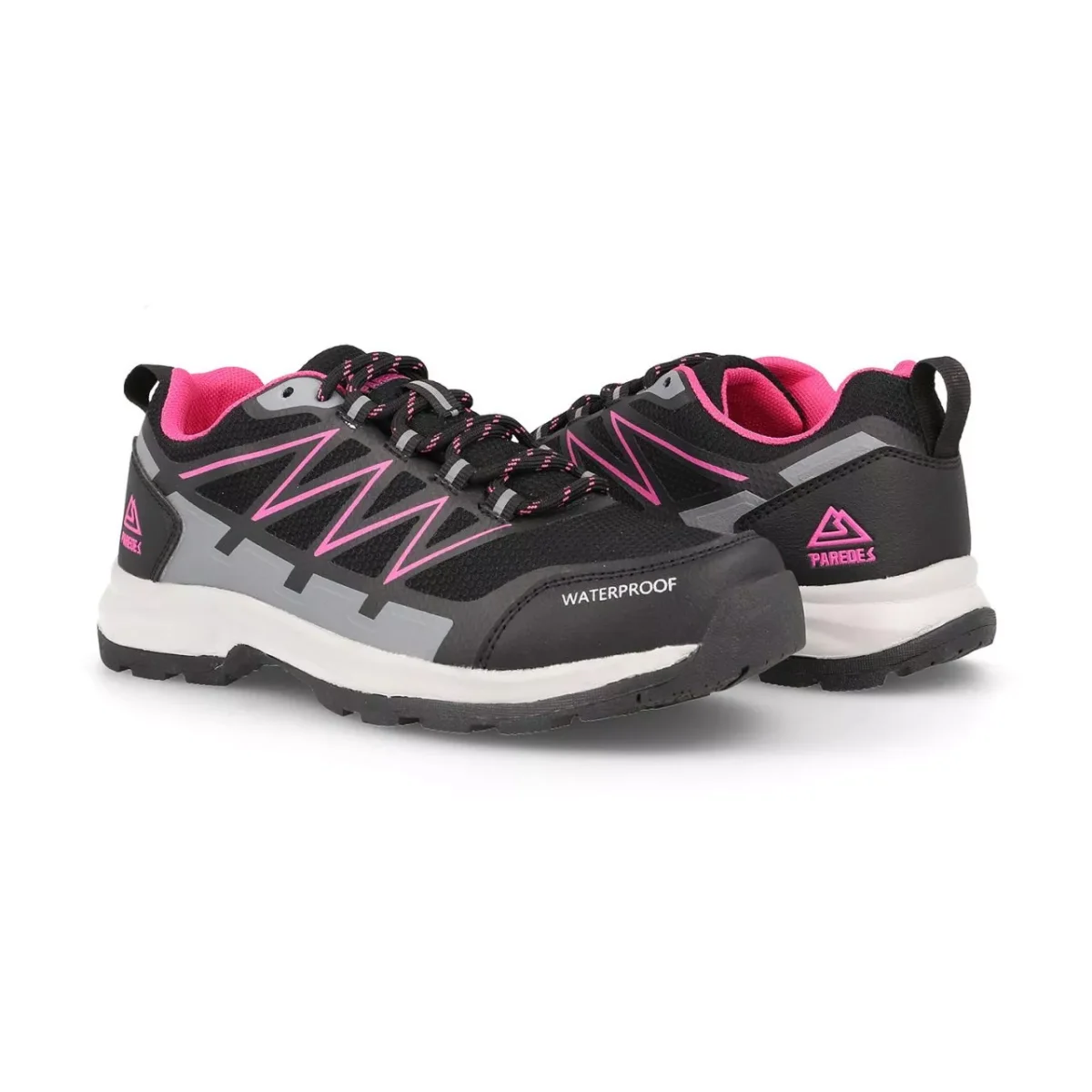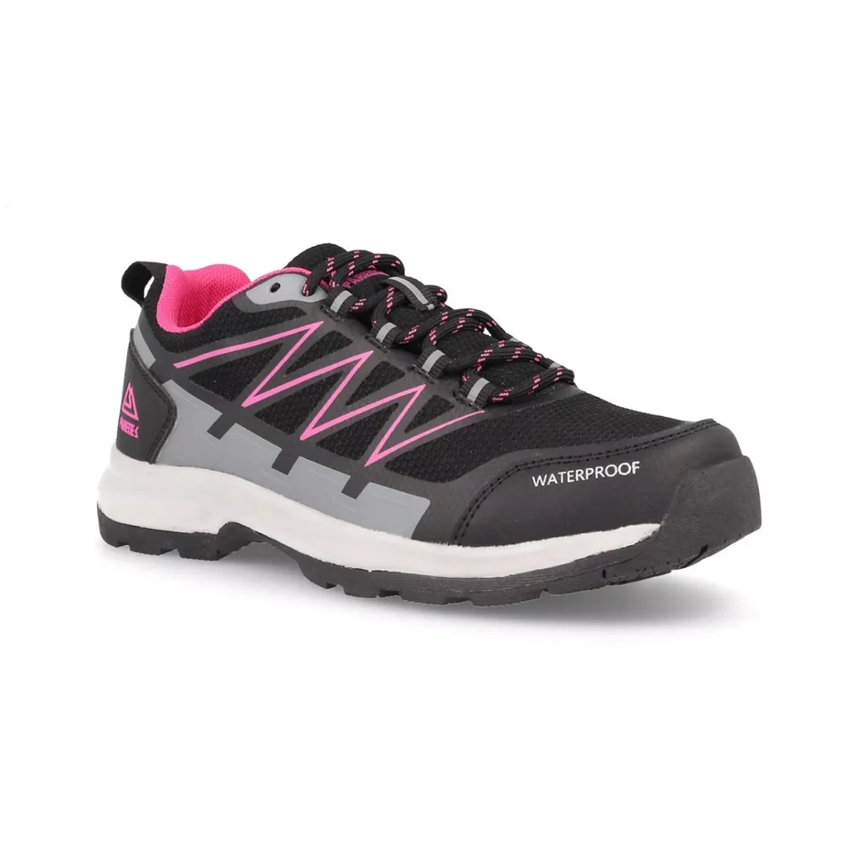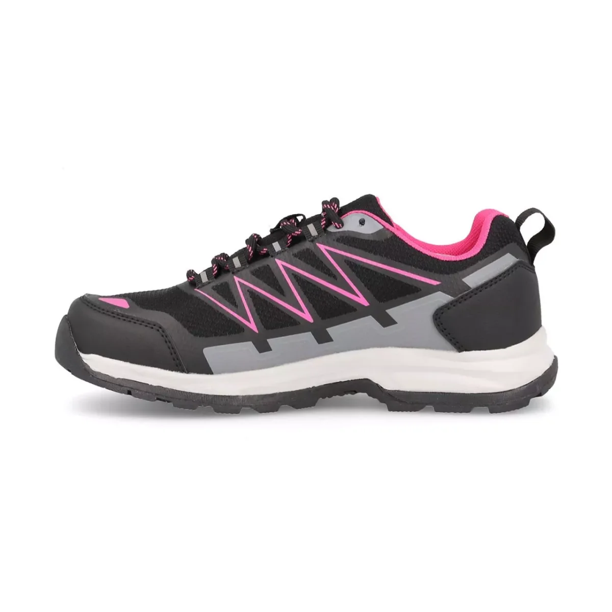Las zapatillas de trekking Agrón en color negro combinan ligereza y comodidad, ideales para senderismo. Fabricadas con corte textil y refuerzos PU, ofrecen gran adaptabilidad al pie y protección en puntera y talón.