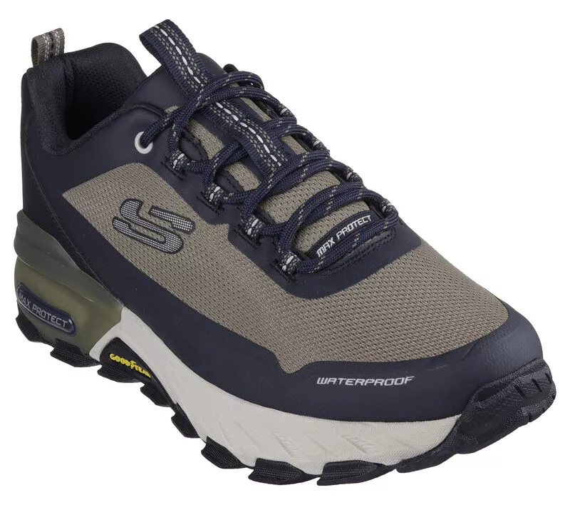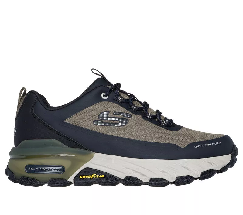 La comodidad deportiva y la tracción duradera se unen en la Skechers Max Protect – Fast Track. Modelo de trail con cordones, empeine de material sintético resistente al agua y malla, plantilla Skechers Air-Cooled Memory Foam® y suela resistente de Goodyear®.