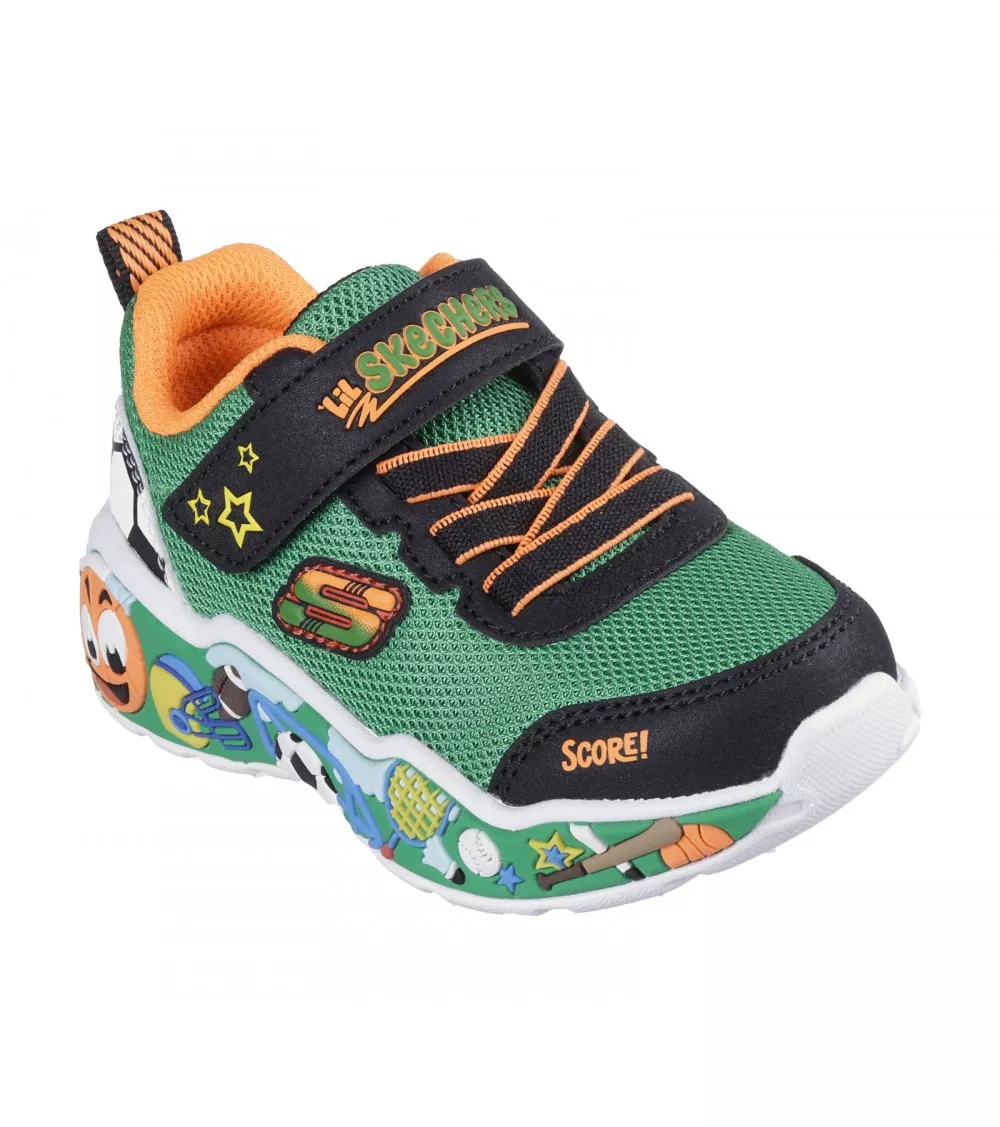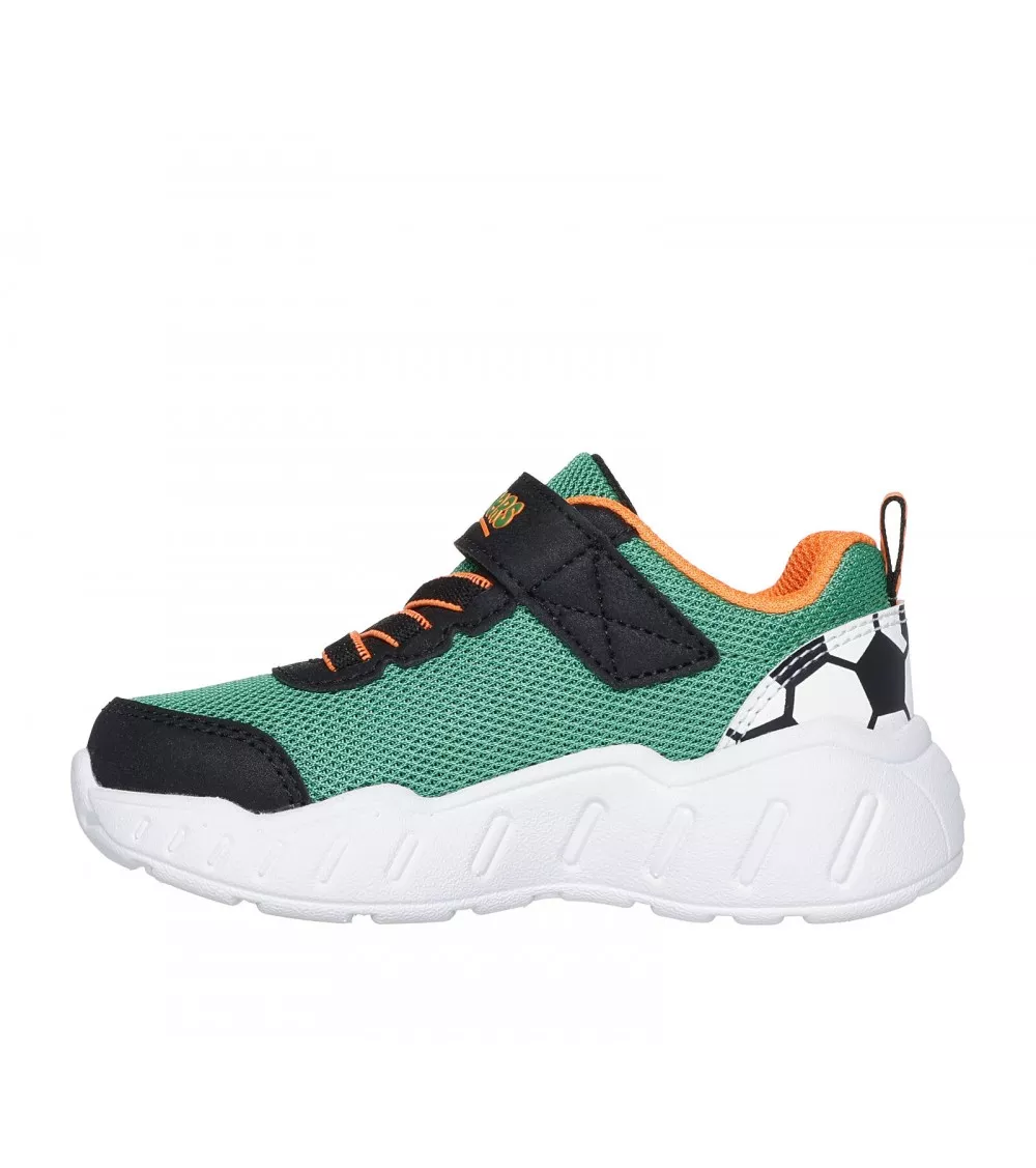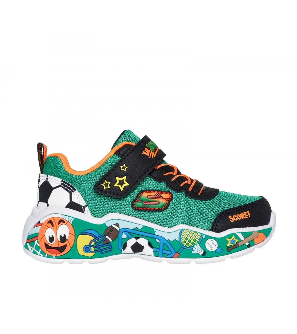 Estas zapatillas de niño de Skechers, cuentan con un divertido diseño con temática de deportes. Cuenta con cordones elásticos y una correa ajustable en el empeine para un ajuste seguro y cómodo, con media suela y plantilla con amortiguación que ofrecen la máxima comodidad todo el día.