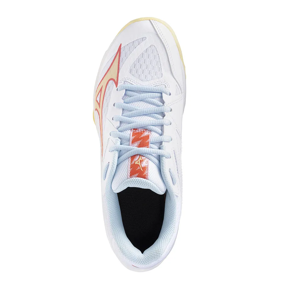 La Thunder Blade Z, recién remodelada desde la parte superior hasta la suela, es el modelo óptimo para la comodidad y la ligereza. La construcción superior libre de tensiones junto con una suave inyección de EVA y una suela de diseño ligero te permiten centrarte en el momento. El antepié ancho y el estabilizador de TPU en el mediopié proporcionan estabilidad en las zonas clave. Amortiguadas y ligeras gracias a la entresuela esculpida y al diseño bien tallado de la suela exterior. Suela de balancín ancho que proporciona gran estabilidad. Plantilla extraíble de 5 mm y placa strobel U4icX para un confort inicial más suave. Suela exterior de caucho que no deja marcas para un gran agarre en la pista.