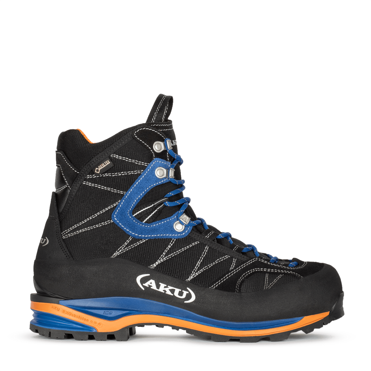 La tecnología del Exoesqueleto se aplica a la suela: la entresuela está hecha de un ligero esqueleto externo de Poliuretano, que sube por la espalda y protege el talón para dar soporte y estabilidad al caminar. La estructura asimétrica, con el brazo interno más ancho y el aumento de poliuretano en la zona media, proporciona apoyo al pie y ayuda a compensar la pronación excesiva. Los zapatos AKU equipados con Exoesqueleto también expresan una identidad estilística única e inmediatamente reconocible.